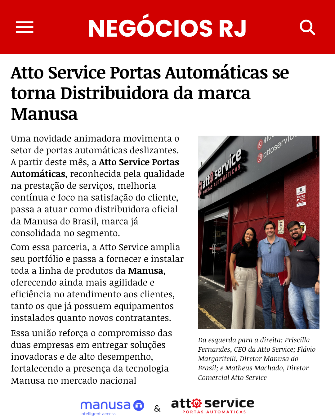 Atto Service Portas Automáticas se torna Distribuidora Oficial Manusa no Brasil